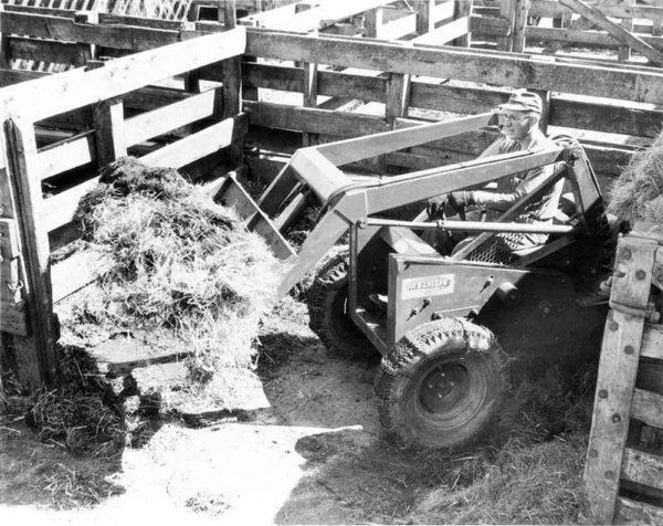 In the 1950s, brothers Cyril (April 8, 1922-Oct. 28, 2020) and Louis (May 9, 1923-July 11, 2010) operated a small machinist-blacksmith shop in Minnesota together, building and repairing machinery for local farmers. A farmer approached them with a need for a self-propelled loader light enough to be lifted to the second floor of a turkey barn and small enough to clean around the barn’s upright poles. In 1957, the Kellers built a three-wheeled loader with two drive wheels in front and a caster wheel in the rear—the precursor to the modern skid-steer loader.