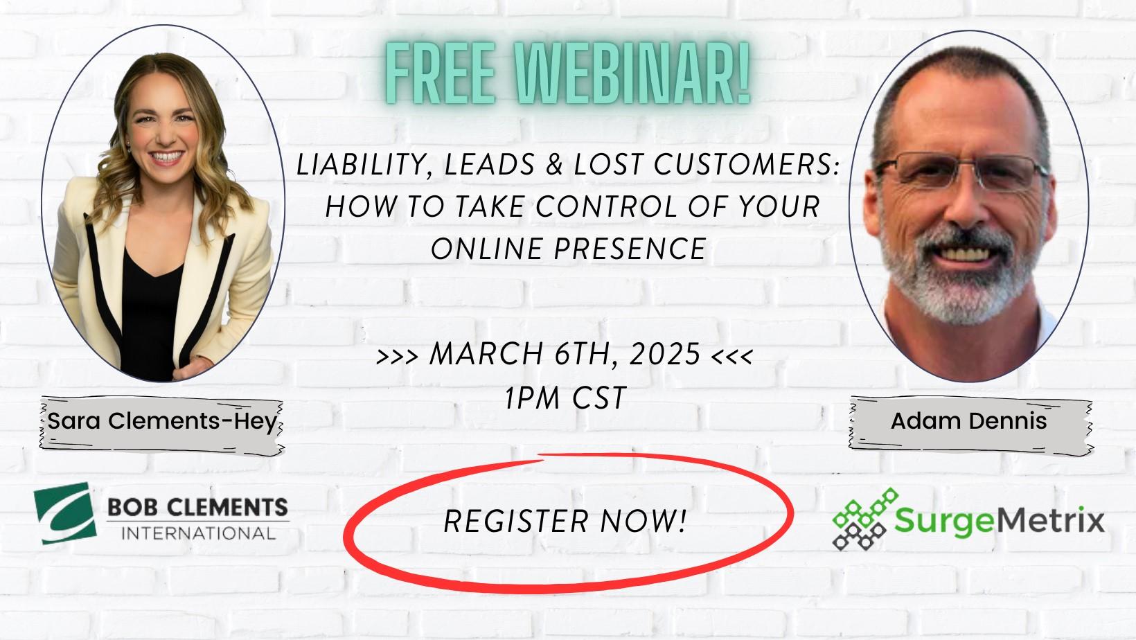 Bob Clements International (BCI) in partnership with SurgeMetrix are excited to be sharing a webinar on March 6th, 2025. Join Sara Hey from Bob Clements International and Adam Dennis from SurgeMetrix as they uncover three big blind spots that are costing dealerships money: Website liability risks (ADA compliance & security issues), how to turn your email list into real leads, and what’s hiding in your marketing contracts—and why it matters. As a bonus: All attendees get a free website audit and a free marketing strategy session.