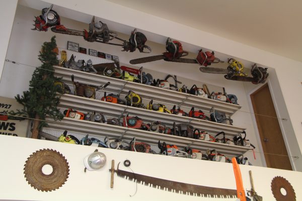 During their long careers in the family business, both Gregg and Bryan have put their hands on lots of equipment, some of it old and antique. They’ve held on to some of the older stuff, and in their spare time have done some restoring and displaying. Many dealerships have a piece or two of older equipment here or there, but the Clatsop Power Equipment collection is notable because it’s larger than most dealerships. Plus, the older outboard motors offer a nice touch. Like most dealerships, there’s not much time or space to create museum-quality displays, but the saws and outboards provide a nice window into small engine history.