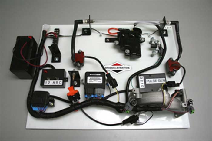 The EFI Training Board features an entire Delphi EFI system. This is similar to the system found on select Briggs & Stratton Vanguard v-Twin engines.