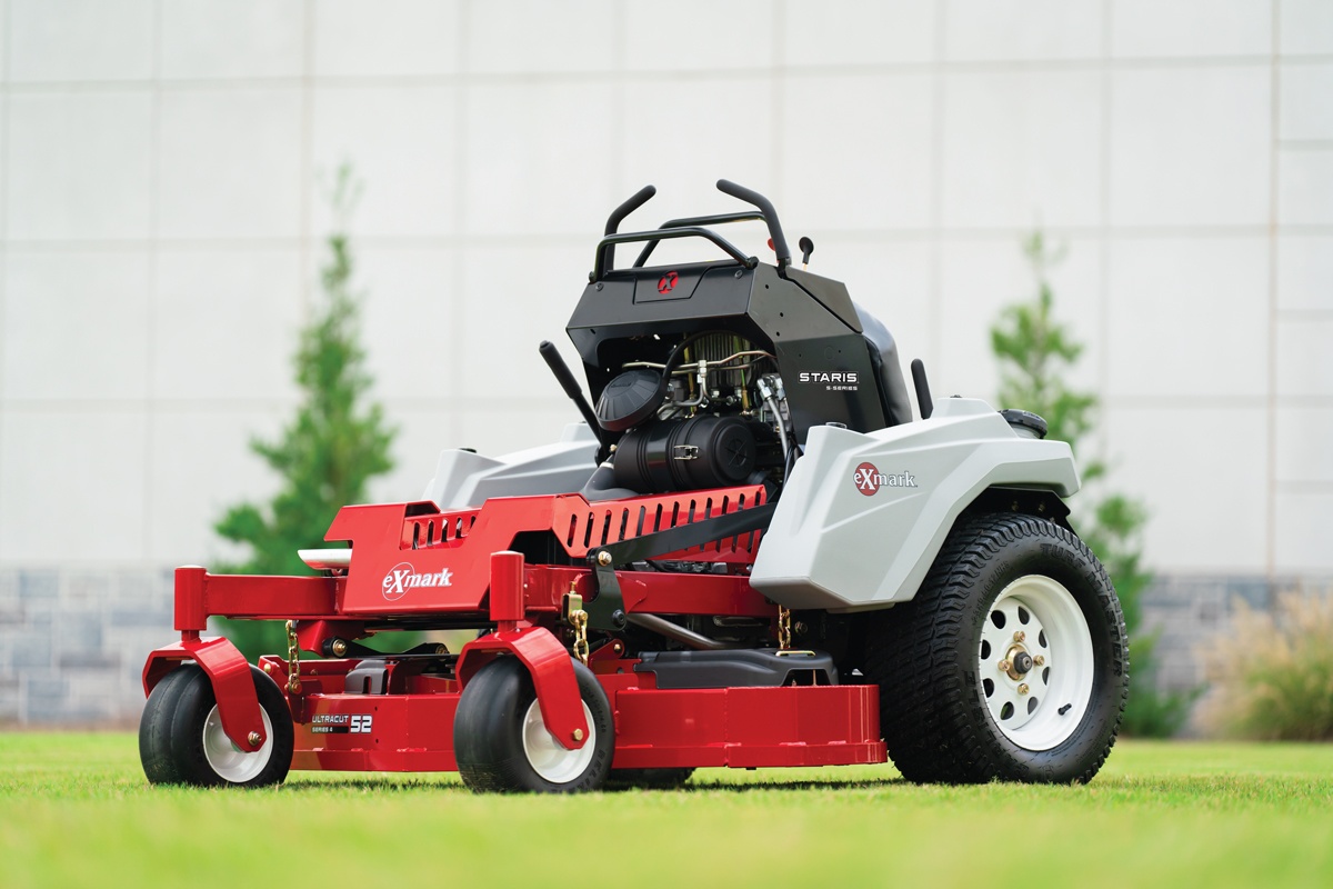 Staris is available in E-series models, with a choice of 32-, 36- and 44-in. UltraCut series 3 cutting decks, and large-frame S-series models, with a choice of 48-, 52- or 60-in. UltraCut series 4 cutting decks. The side-discharge UltraCut cutting decks also offer the ability to mulch or bag clippings when equipped with the appropriate accessories from Exmark.