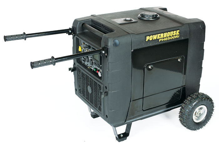 Folding and locking wheelbarrow style handles and pneumatic tires make the 6500Ri easily maneuverable around the jobsite. Standard features include remote electric start, a 120/240V switch, four power outlets and a 12V utility connection. It has a powerful 11.6 HP engine and can run up to 12.8 hours on a single tank of gas. Additional features include an internal circuit breaker, an electronic fuel gauge, automatic low oil shutdown and emergency stop control. It is very quiet for a generator of this size and output. The 6500Ri is also EPA, CARB, CETL and ISO 9001 compliant. The box includes: an oil jug, a12V charge cable, a spare spark plug, a spark plug wrench & handle, a spare fuse, a user’s manual, 2 keys and 2 remote controls and a 2-year consumer/1-year commercial warranty. Contact us at Booth 5013, call 877-544-4449; visit powerhouse-products.com. |