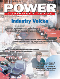 Power Equipment Trade’s January/February issue features a collection of veteran, articulate industry “voices” discussing the future and the impact of new technology and changing retailing dynamics. Also, Kentucky’s Central Equipment completes major relocation and expansion, and PET takes a look at new technology for the new millennium.