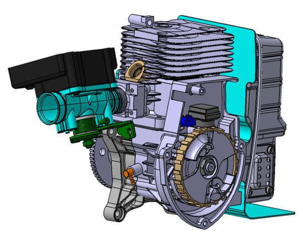 Bench testing is being performed in Japan utilizing a current mass-production Maruyama 80 cc gasoline engine that is capable of all operating angle positions and high-speed operation of over 8,000 RPM.