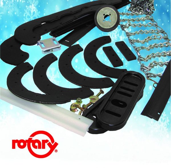 Additionally, Rotary also offers over 30 different MaxTrac tire chains and TerraGrip traction belts in a variety of sizes to fit most tires. Belts include an innovative traction aid that helps prevent steel from touching the driving surface. Multi-ply rubber slats surrounding the tire tread provide a secure fit for improved traction. They are easily installed with no tools required.